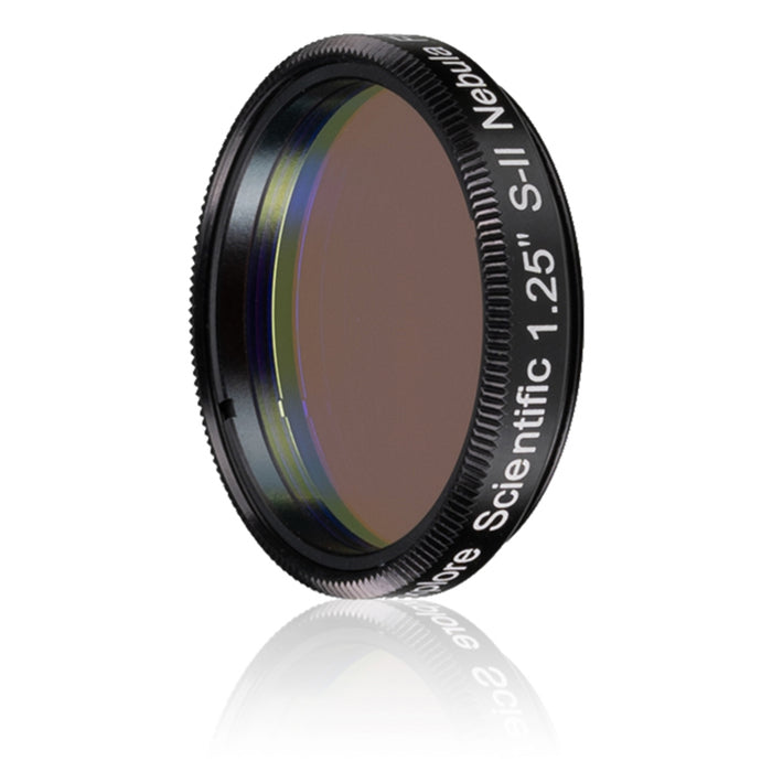 Der Erkundungs-Scientific S-II-Filter verwendet die Eigenschaft des sogenannten Emissionsnebels. Diese Objekte leuchten in bestimmten Farben, die sogenannten Emissionslinien. Die Emissionslinien sind mit bestimmten chemischen Elementen verbunden - in diesem Fall ionisierter Schwefel. Der Erkundung von wissenschaftlichem S-II-Nebelfilter blockiert alle anderen Farben (und damit fast alle künstlichen Lichts) und lässt nur die Emissionslinien des ionisierten Schwefels bei 672 nm durch. Der Effekt ist erstaunlich: Plötzlich wird der Nebel an Stellen sichtbar, die ohne Filter völlig leer erscheinen. Wenn der Himmel leicht aufgehellt wird, gibt es viele planetarische Nebel, Emissionsnebel und Supernova-Überreste bei der Verwendung dieses Filters völlig problemlos. Ein Muss für jeden visuellen Astronomen am Amateur und auch für die Astrophotographie.
