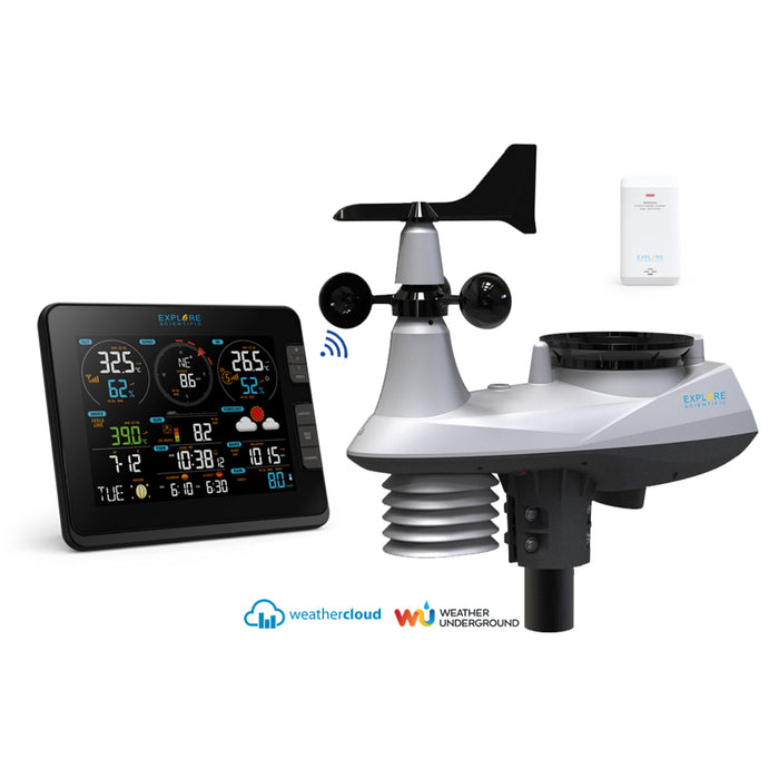 L'Explore Scientific 7-en-1 Capteur météorologique Station météorologique professionnelle avec WiFi peut réseauter avec votre Weather Underground® et Weathercloud® Compte en ligne pour examiner la météo en direct depuis votre station météo à domicile via le site Web Wunderground.com à partir de n'importe quel ordinateur ou tablette sur Internet.