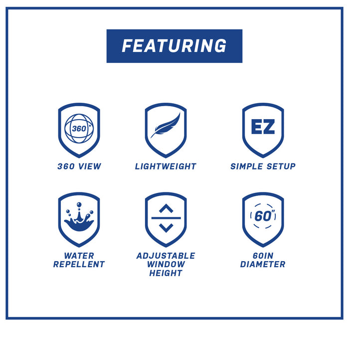 With our 360 hunting blind, users get all-around views to maximize their target options. The Omni Blind has a height adjustment window, simple to set up and includes removable orange reflective bands to be used as location identifier or additional breakup to the blind. It is lightweight and fits into an included case with strap for portability.